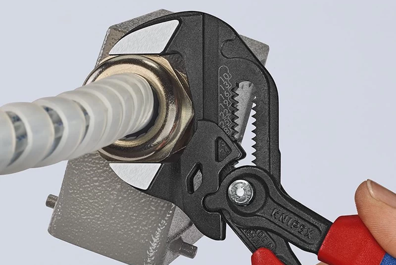 - Smooth jaws for damage free installation of plated fittings – working directly on chrome!